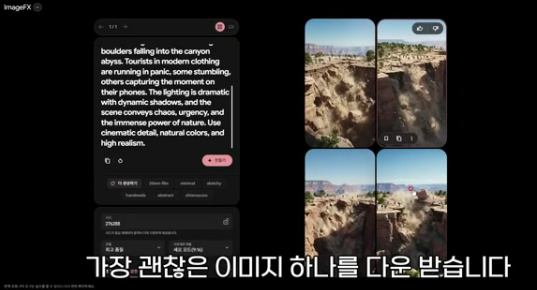 예: “그랜드 캐니언에서 집이 붕괴되는 장면” 같은 독창적인 아이디어를 얻을 수 있어요.